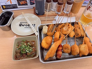 その後は通天閣へ!大阪は何度か来ていましたが通天閣は初めてです。ランチは串カツを食べいざ通天閣へ!と入り口まで行くと70分の待ち時間が。。。あきらめも肝心でホテルへ戻りました。