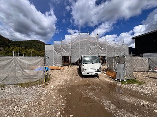 外周部は足場を設置しシートを貼っているので外から現場は見えません。