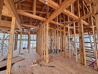 建て方の時に床合板も貼るので足場も良くなりスムーズに作業が出来ています。まだ建て方が終わったばかりなのでこれからが本番です。