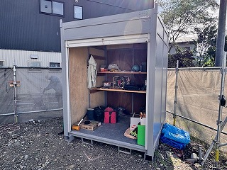 最近現場の窃盗が多いという事で、物置はシャッター(鍵付き)物置を使用しています。