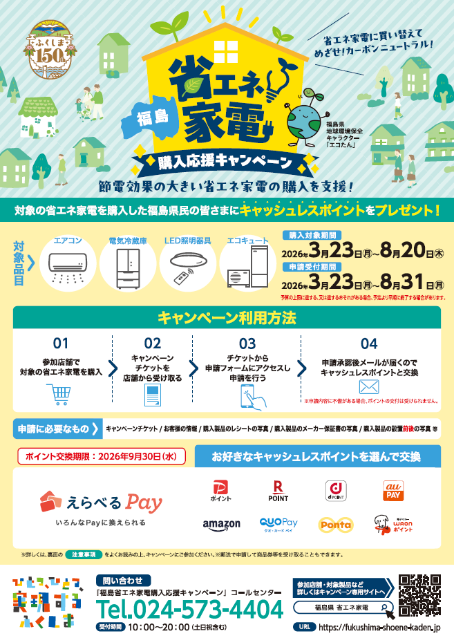 福島県省エネ家電購入応援キャンペーンのご案内