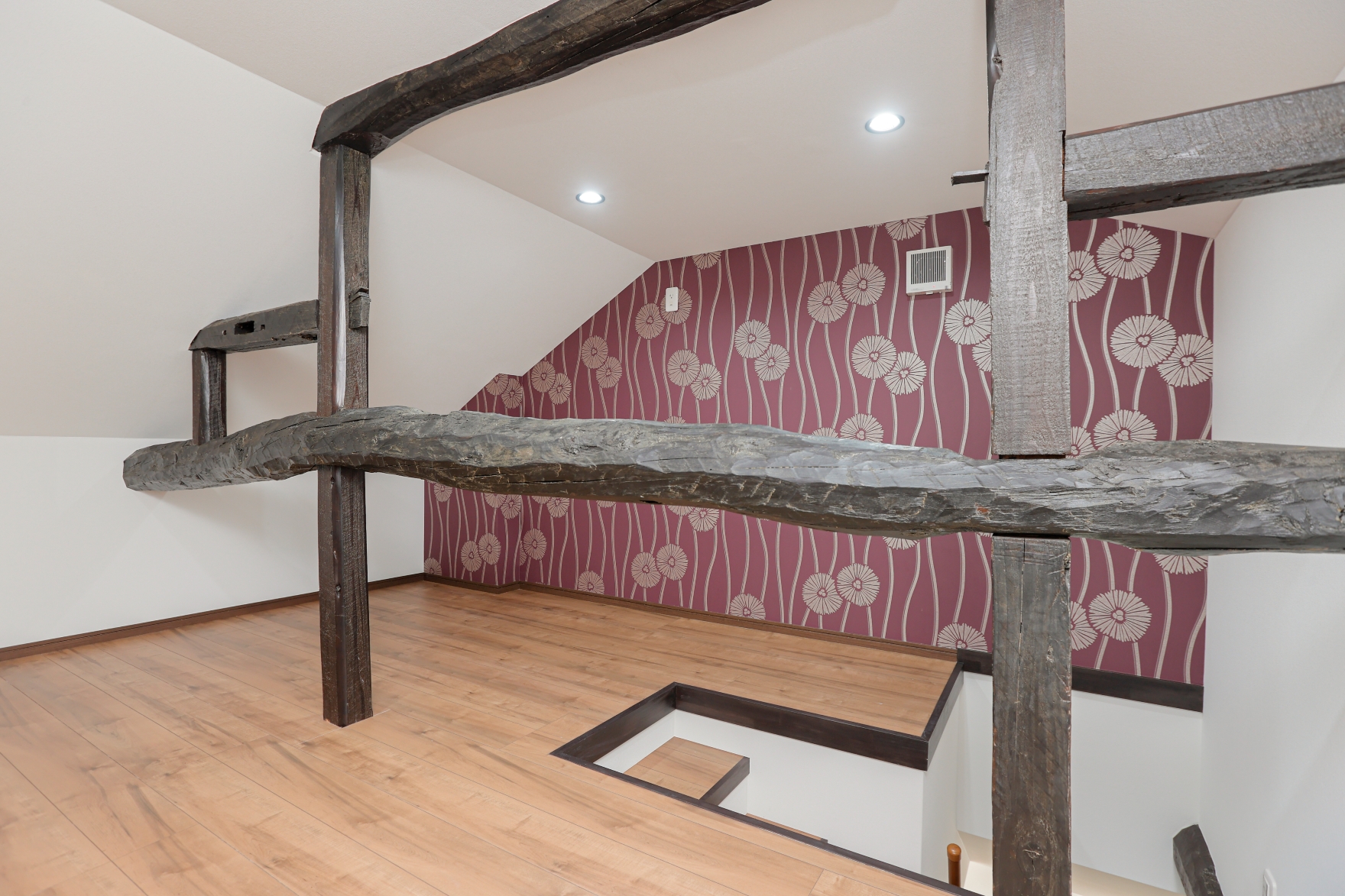 左奥にはクローゼットが見えています。白を基調とした洋室ですが、古民家の内部となっています。