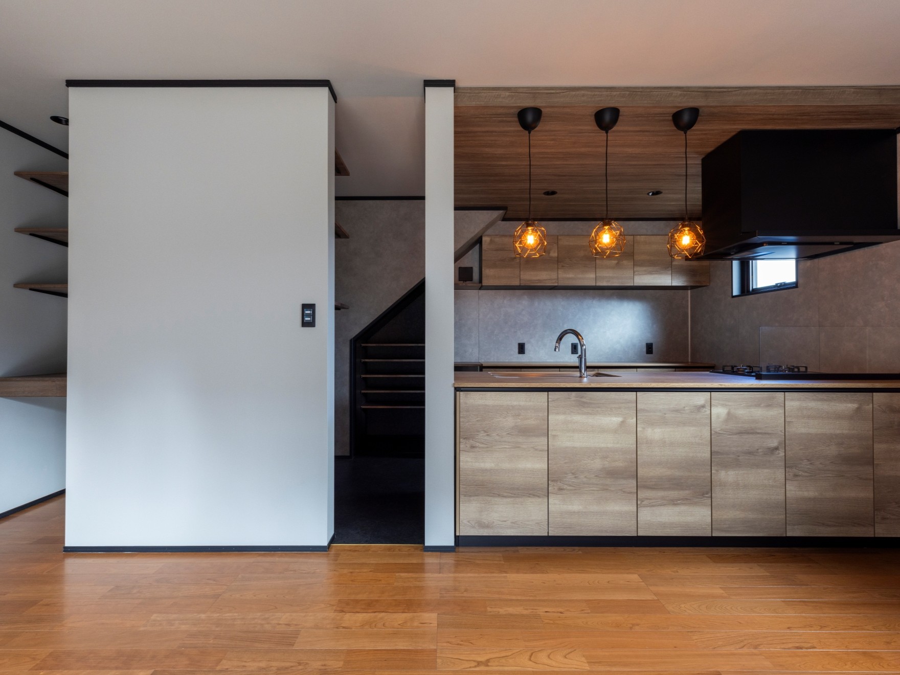 キッチンを正面から見たものですが、おしゃれなキッチンメーカーのカタログのようですね。