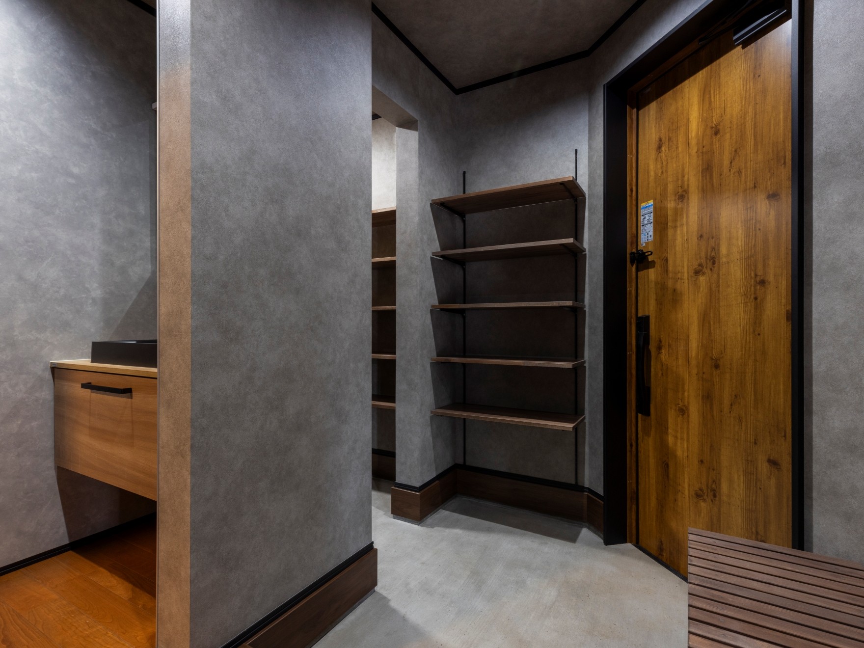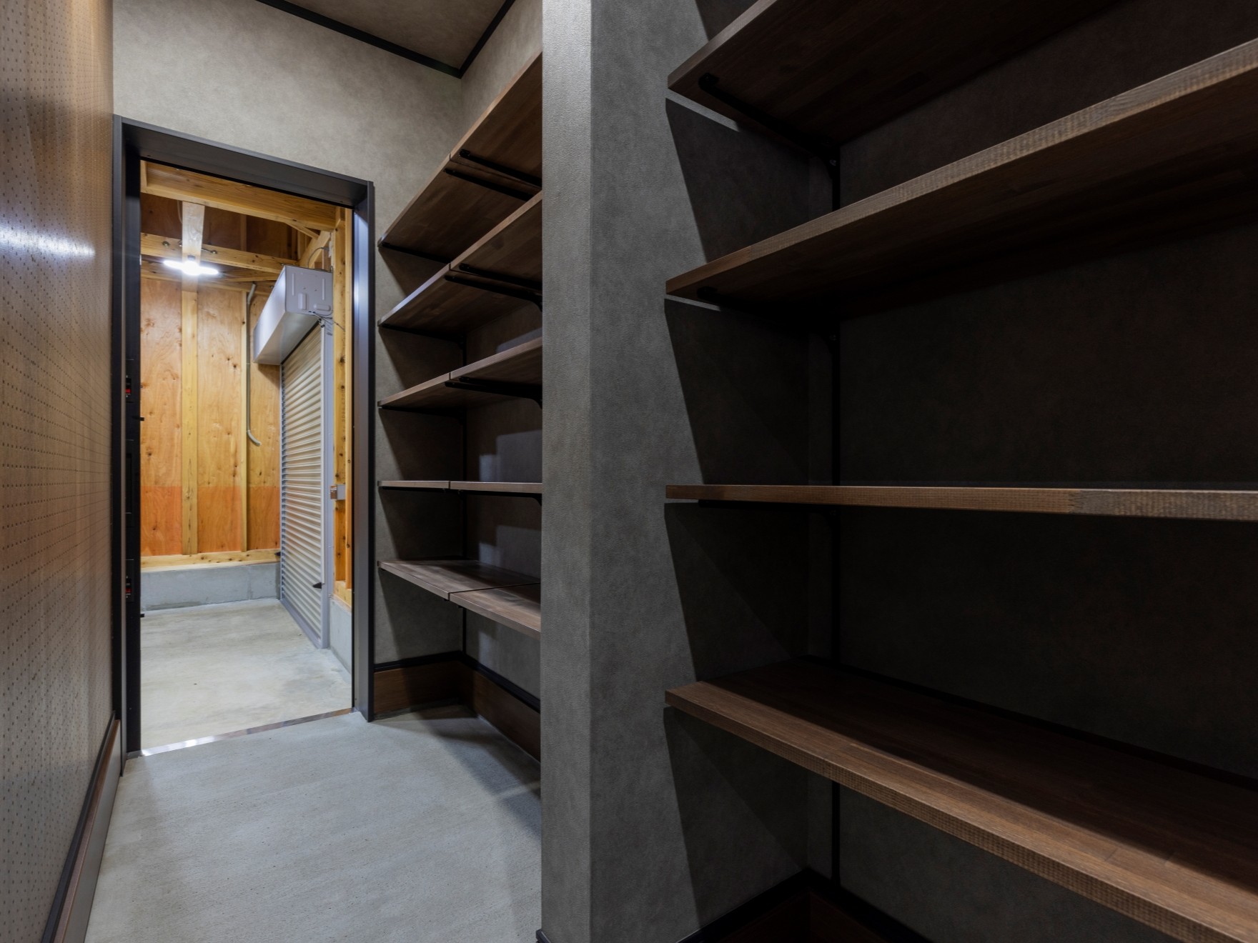 玄関ホールには収納棚がたくさんあります。これも大工さんが造った棚です。