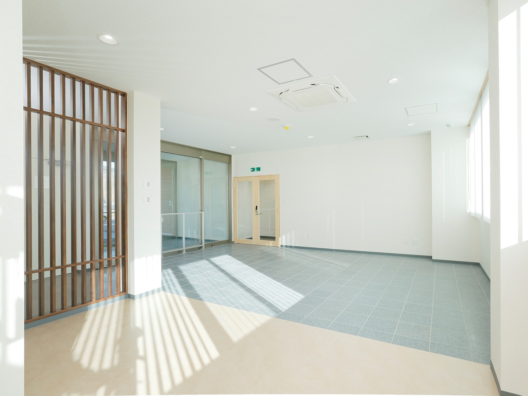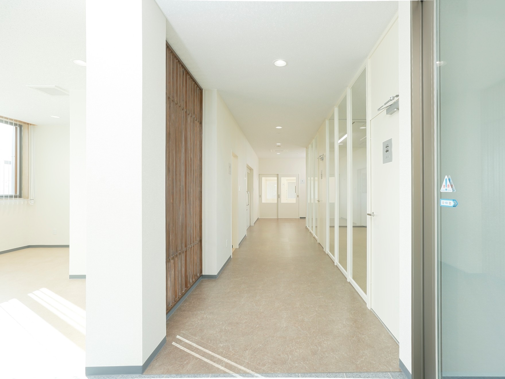 事務室は大きな空間で窓際には木製の棚が並んでいます。木材でどこか温かい雰囲気になっています。