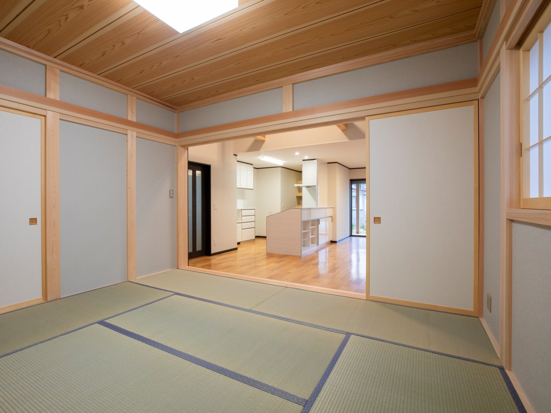 リビングと和室のつながりもきれいです。リビングのフローリングが無垢材なので和室との見え方も違和感がありません。