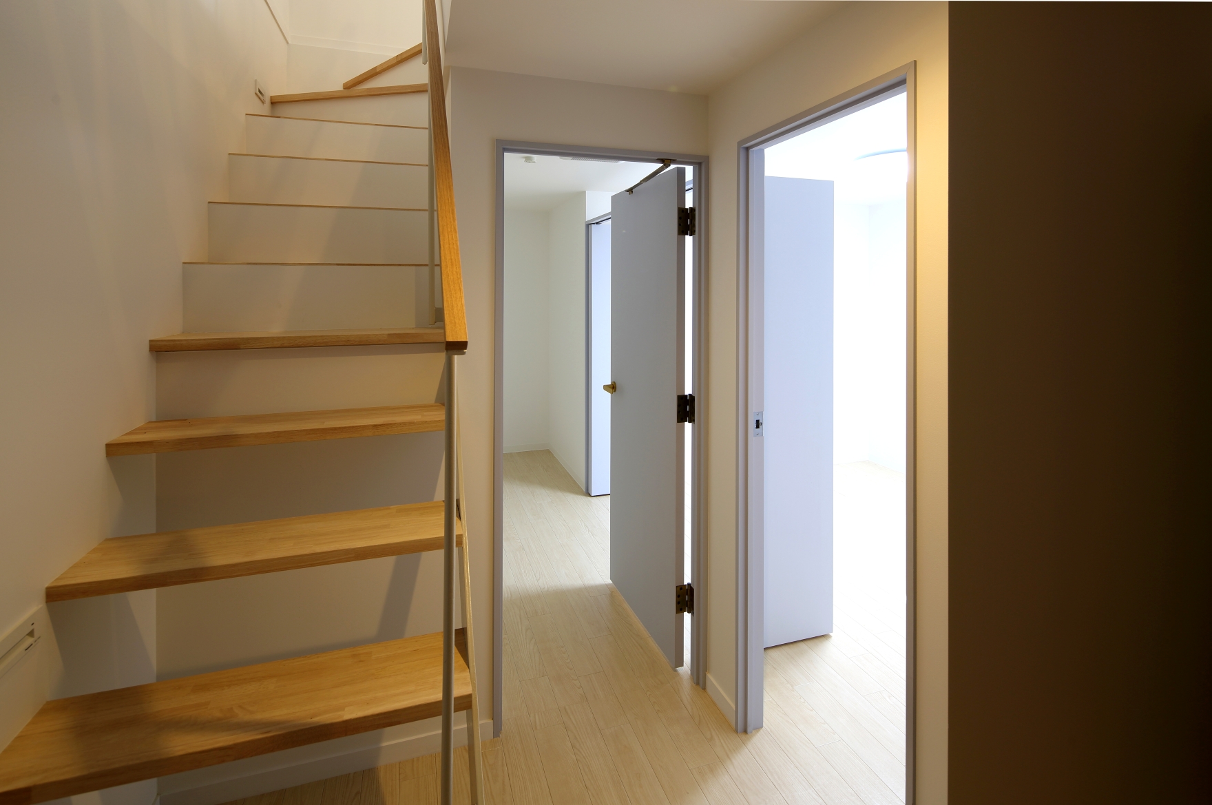 各部屋の扉も優しいグレーに統一され、インテリア全体に一体感を与えています。