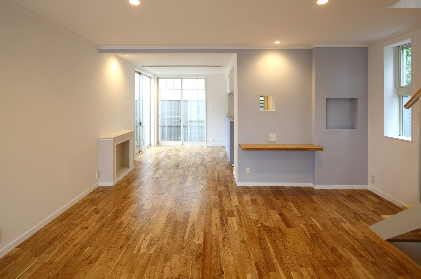 無垢材のフローリングが温もりを感じさせ、日々の暮らしを心地よく彩ります。