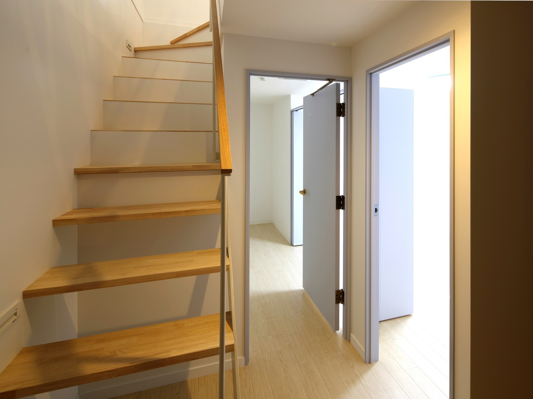 各部屋の扉も優しいグレーに統一され、インテリア全体に一体感を与えています。