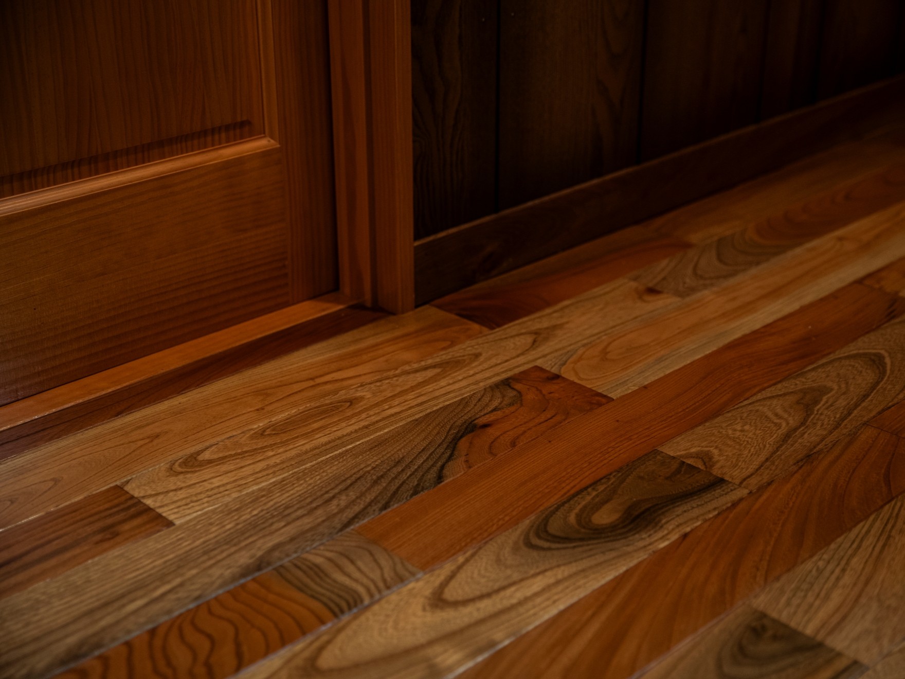 床材にケヤキの無垢材を使用しています。